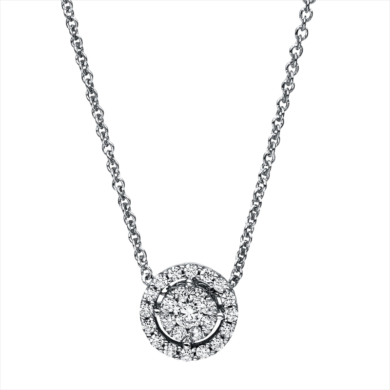 Collier 18 kt WG. Ankerkette. 1 Brill. 0.08 ct. TW-si. 24 Brillanten 0.23 ct. TW-si. L:45.0 cm. Ø:8.4 mm