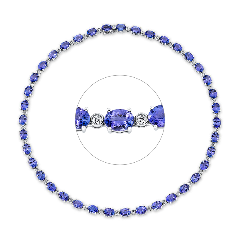 Collier 18 kt WG, 39 Brill. 2,24 ct, TW-si, 39 Tansanit 48,16 ct blau