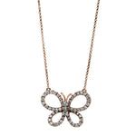 Collier 18 kt RG Schmetterling. 2 Tropfen 0.12 ct. TW-si. 56 Brillanten 0.99 ct. TW-si. H:18.2 mm. B:23.1 mm