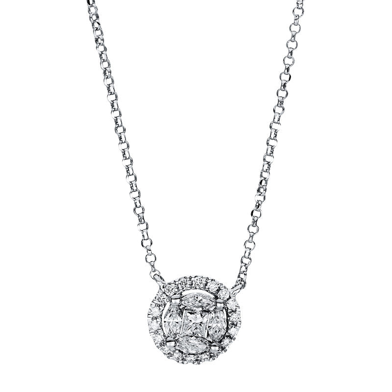 Collier 18 kt WG, mit ZÖ 38cm,40.5 cm, 1 Princ. 0,07 ct, TW-si, 4 Nav. 0,11 ct, TW-si, 22 Brill. 0,10 ct, TW-si