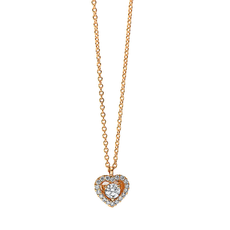 Collier 18 kt RG Herz. 19 Brillanten 0.13 ct. TW-si. H:8.0 mm. B:6.8 mm. L:42.0 cm