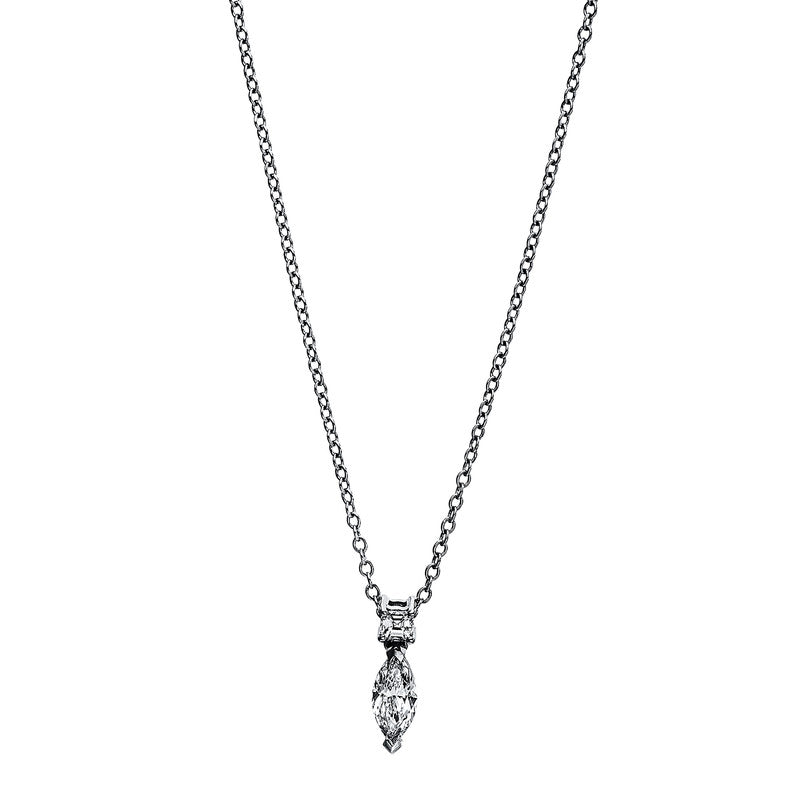 Collier 18 kt WG. 1 Navette 0.46 ct. TW-vsi. 1 Assher 0.12 ct. TW-vsi. L:40.0 cm