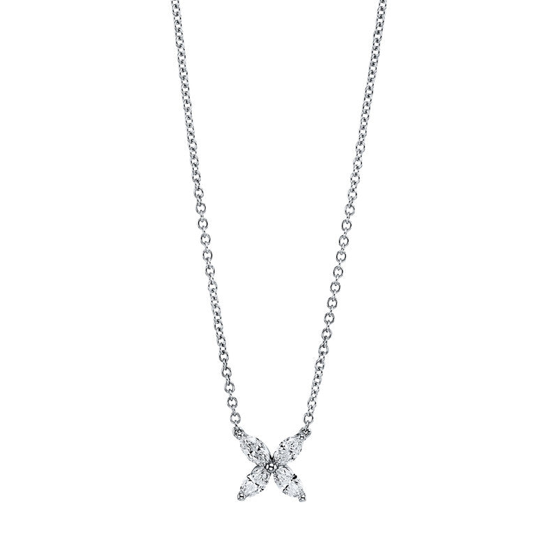 Collier 18 kt WG. 4 Navette 0.44 ct. F-si. H:8.5 mm. B:8.2 mm. L:42.0 cm