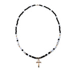 Collier 18 kt RG Kreuz. 135 Brillanten 0.33 ct. schwarz. 30 Farbsteine 61.69 ct weiß. 98 Onyx 66.66 ct schwarz. L:65.0 cm