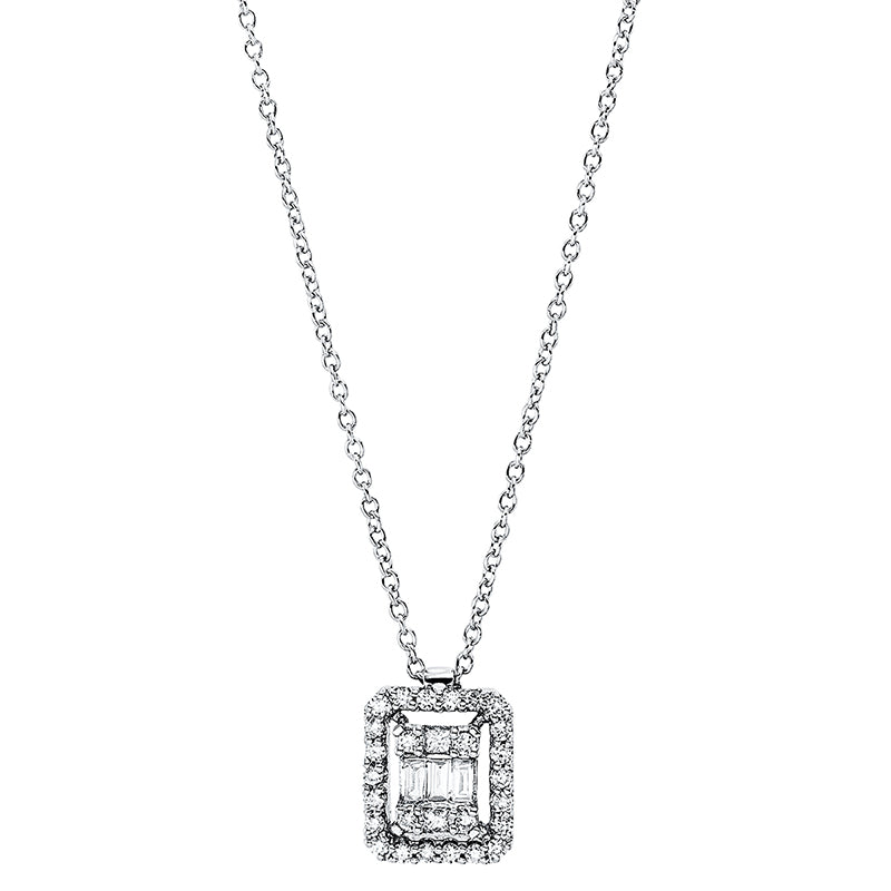 Collier 18 kt WG. 3 Baguette 0.05 ct. TW-si. 2 Princ. 0.03 ct. TW-si. 26 Brillanten 0.12 ct. TW-si. L:45.0 cm