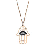 Collier 18 kt RG Hamsa. mit Öse. 11 Brillanten 0.07 ct. TW-si. 14 Brillanten 0.08 ct. schwarz
