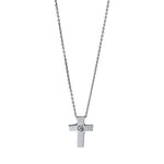 Collier 18 kt WG Kreuz. 1 Brill. 0.02 ct. TW-si. H:10.0 mm. B:7.3 mm. L:42.0 cm. S:1.8 mm