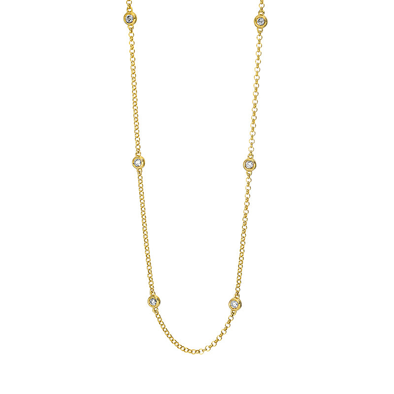 Collier Zarge 18 kt GG. mit ZÖ 50 cm. 10 Brillanten 0.53 ct. TW-si. L:55.0 cm. Ø:3.9 mm