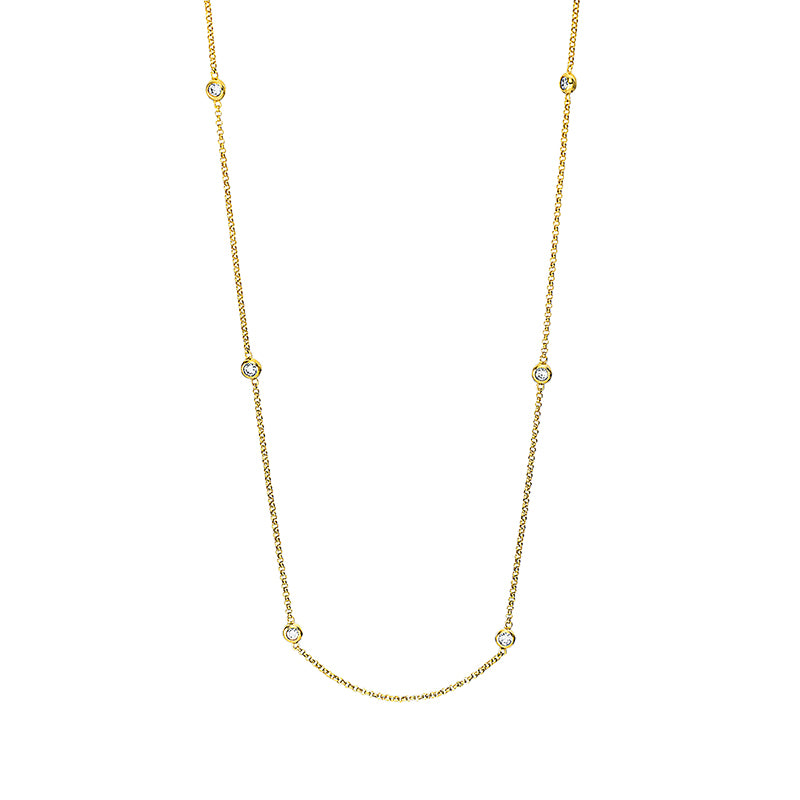 Collier 18 kt GG, mit ZÖ 42.5 cm, 10 Brill. 0,39 ct, TW-si