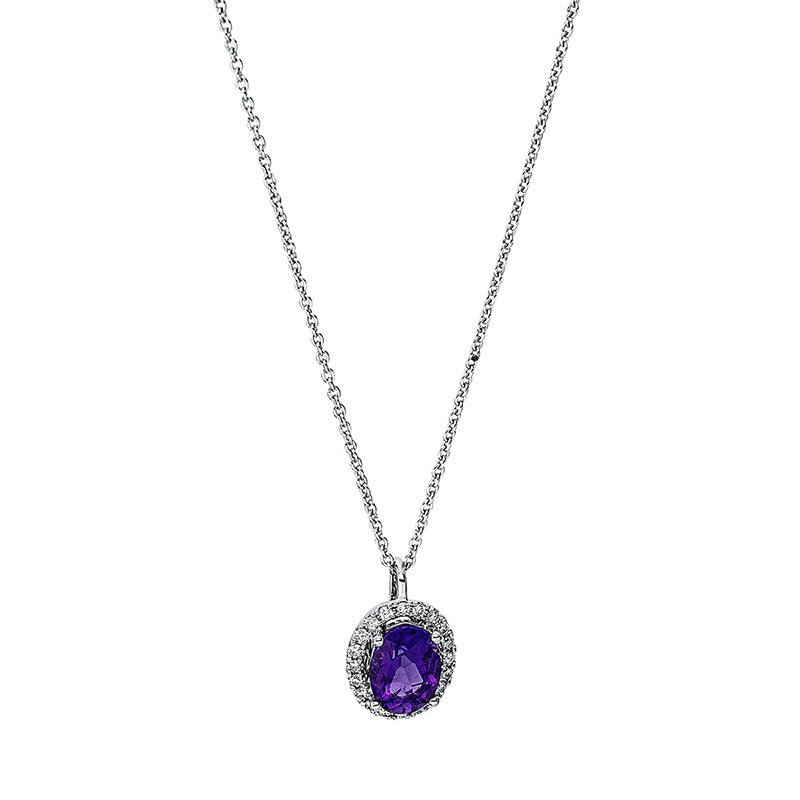 Collier 18 kt WG, 20 Brill. 0,13 ct, TW-pi, 1 Amethyst 1,20 ct lila