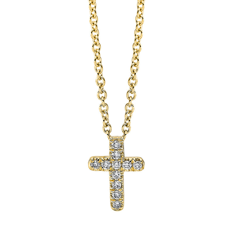 Collier 18 kt GG Kreuz. mit ZÖ 40 cm + 42.5 cm. 11 Brillanten 0.06 ct. TW-si. H:9.1 mm. B:6.6 mm. L:45.0 cm. S:1.4 mm