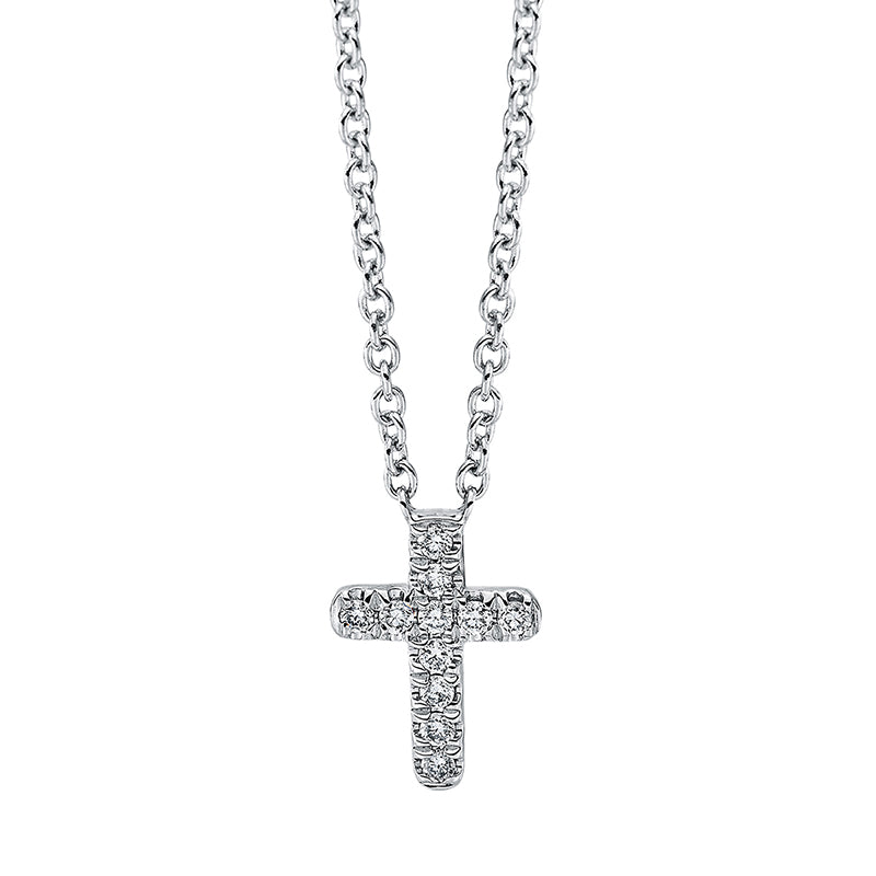 Collier 18 kt WG Kreuz. mit ZÖ 40 cm + 42.5 cm. 11 Brillanten 0.06 ct. TW-si. L:45.0 cm