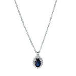 Collier 18 kt WG, mit ZÖ 40 cm + 42.5 cm, 16 Brill. 0,10 ct, TW-si, 1 Saphir 0,53 ct blau