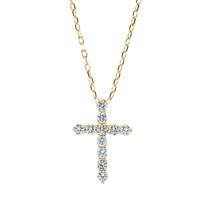 Collier 18 kt GG Kreuz. mit ZÖ 43 cm. 11 Brillanten 0.37 ct. TW-si. H:16.4 mm. B:11.7 mm. L:45.7 cm. S:2.7 mm