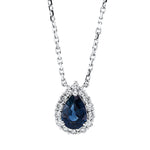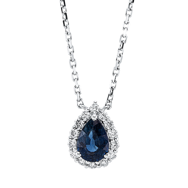 Collier 18 kt WG, mit ZÖ 40 cm + 43 cm, 14 Brill. 0,20 ct, TW-si, 1 Saphir 0,86 ct blau