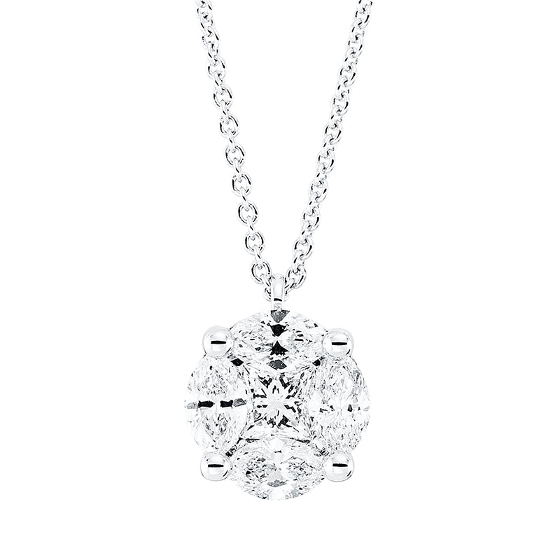 Collier 18 kt WG, 1 Princ. 0,20 ct, TW-si, 4 Nav. 0,55 ct, TW-si
