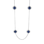Collier 18 kt WG. 168 Brillanten 1.10 ct. TW-vsi/si. 7 Saphire 1.75 ct blau. 28 Saphire 6.01 ct blau. L:61.0 cm. S:3.2 mm. Ø:12.5 mm