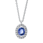 Collier 18 kt WG, mit ZÖ 40 cm + 43 cm, 18 Brill. 0,12 ct, TW-pi, 1 Saphir 0,69 ct blau