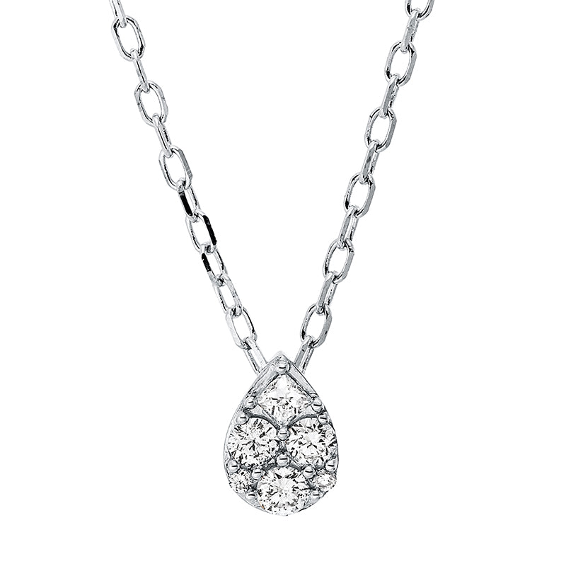 Collier 18 kt WG Tropfen. mit ZÖ 40 cm + 43 cm. 2 Brillanten 0.01 ct. TW-pi. 1 Princ. 0.04 ct. TW-si. 3 Brillanten 0.10 ct. TW-pi. L:45.7 cm