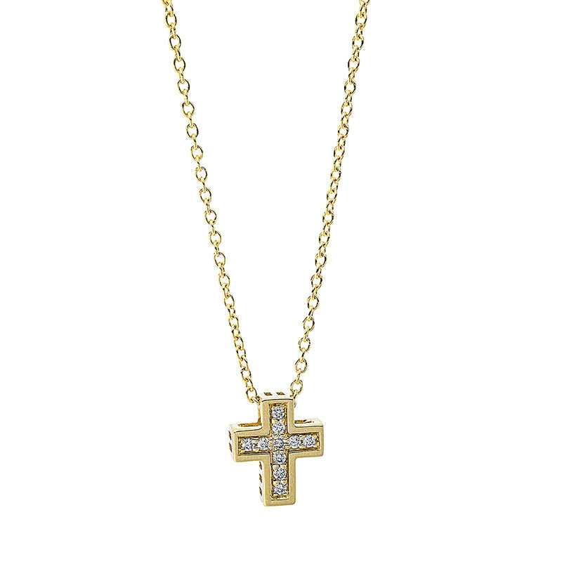 Collier 18 kt GG Kreuz. 10 Brillanten 0.04 ct. TW-si. H:8.0 mm. B:6.6 mm. L:45.0 cm. S:2.5 mm