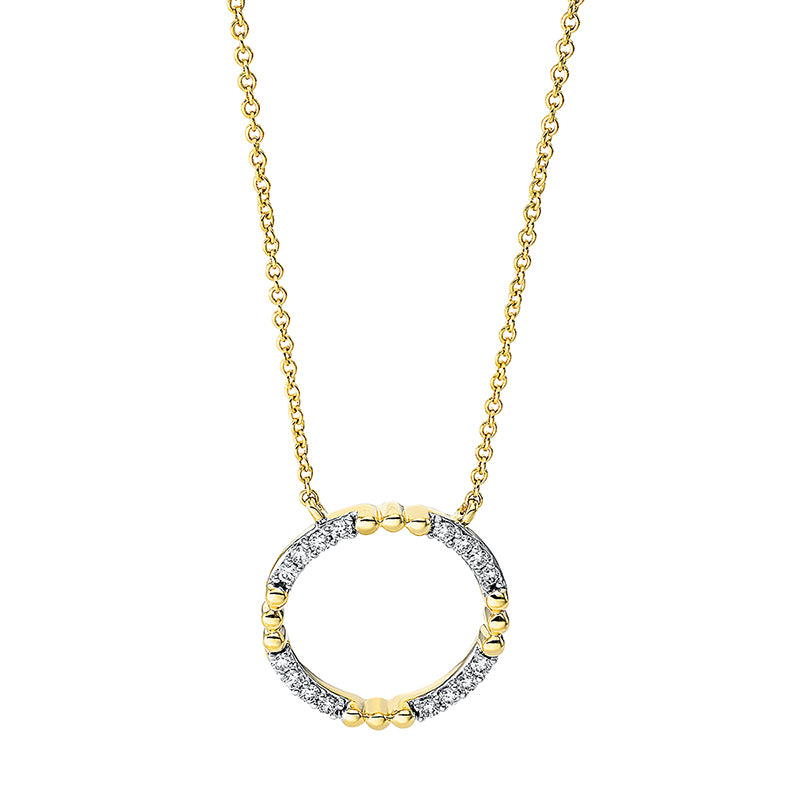 Collier 18 kt GG Kreis. Fassung rhodiniert. loop 40 cm. 16 Brillanten 0.14 ct. TW-si. L:45.7 cm