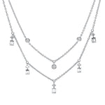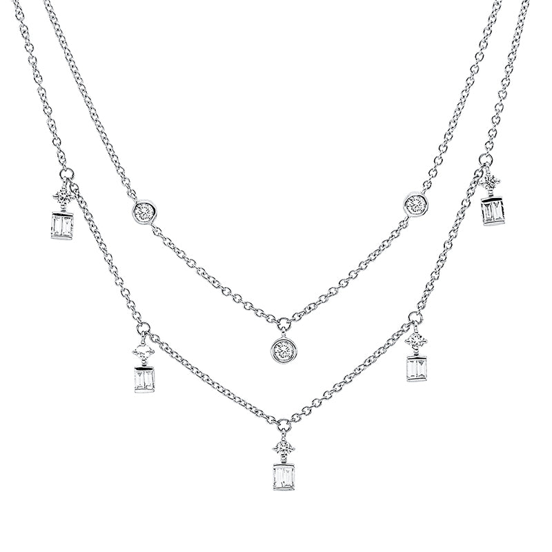Collier 18 kt WG. mit ZÖ 40 cm + 43 cm. 2 Brillanten 0.10 ct. TW-si. 1 Brill. 0.06 ct. TW-si. 10 Baguette 0.24 ct. TW-si. 5 Brillanten 0.18 ct. TW-si. L:45.7 cm