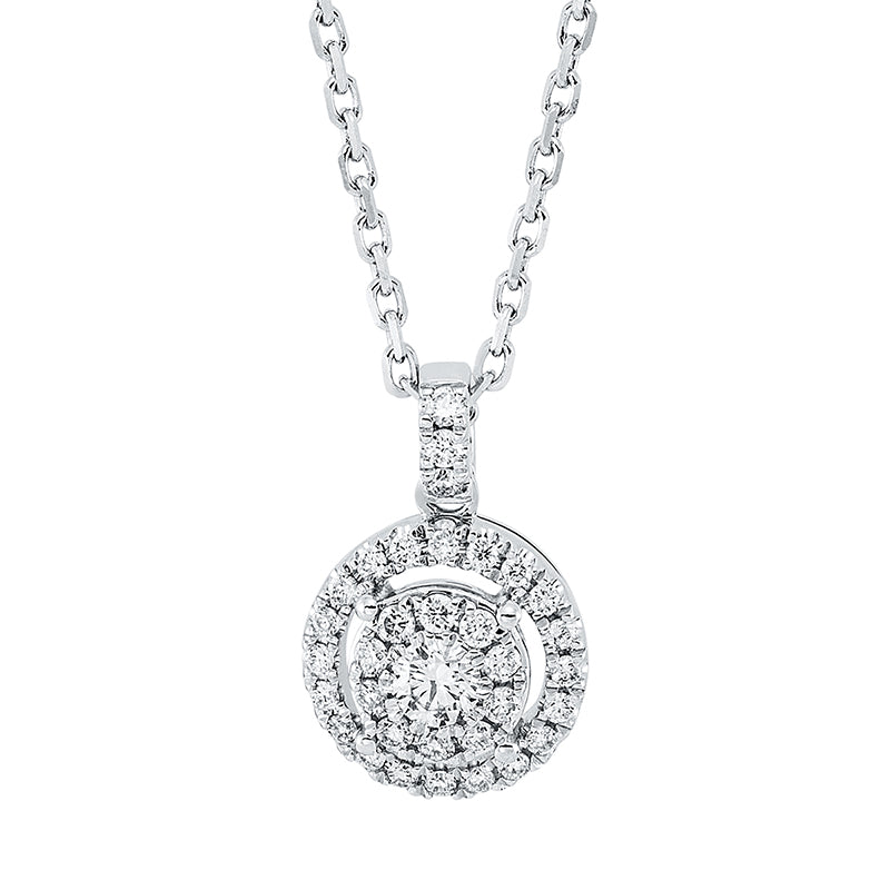 Collier 18 kt WG. mit ZÖ 40 cm + 43 cm. 1 Brill. 0.09 ct. TW-si. 33 Brillanten 0.19 ct. TW-si. L:45.7 cm