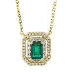 Collier 18 kt GG, mit ZÖ , 14 Brill. 0,20 ct, TW-si, 30 Brill. 0,15 ct, TW-si, 1 Smaragd 0,62 ct grün