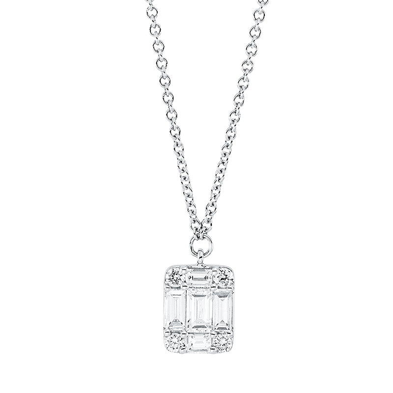 Collier 18 kt WG. mit ZÖ 40 cm + 43 cm. 5 Baguette 0.24 ct. TW-si. 4 Brillanten 0.06 ct. TW-si. L:45.7 cm