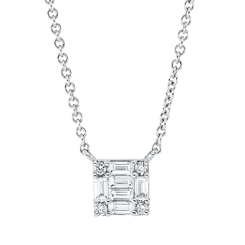Collier 18 kt WG. mit ZÖ 40 cm + 43 cm. 6 Baguette 0.11 ct. TW-si. 4 Brillanten 0.02 ct. TW-si. L:45.7 cm