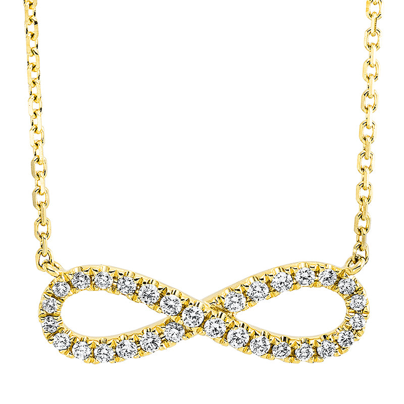 Collier 18 kt GG Infinity. mit ZÖ 40 cm + 43 cm. 22 Brillanten 0.27 ct. TW-si. 8 Brillanten 0.06 ct. TW-si. L:45.7 cm