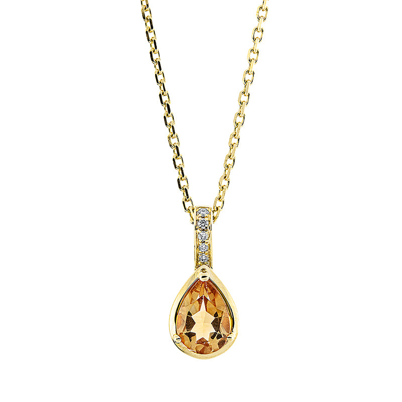 Collier 18 kt GG, mit ZÖ 40 cm + 43 cm, 5 Brill. 0,03 ct, TW-si, 1 Citrin 0,67 ct gelb
