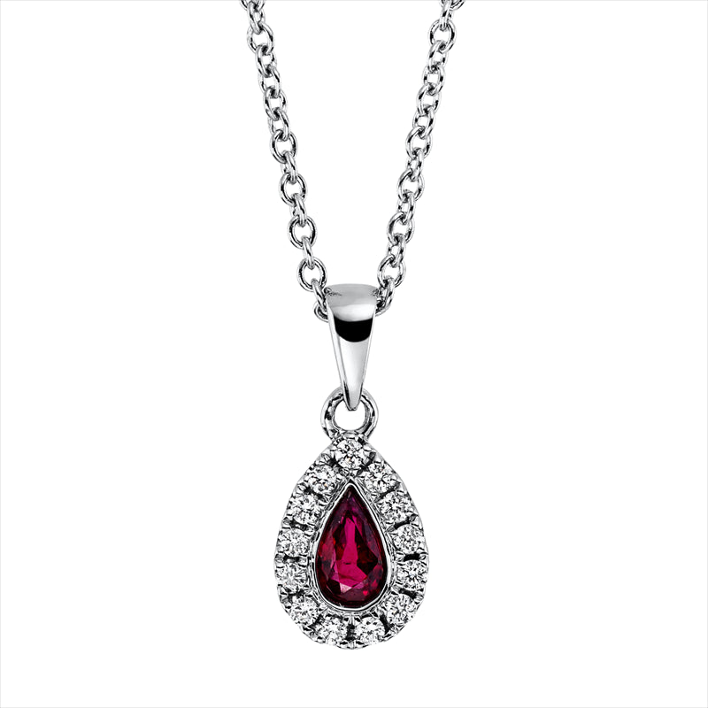 Collier 18 kt WG, mit ZÖ 40 cm + 42.5 cm, 13 Brill. 0,08 ct, TW-si, 1 Rubin 0,24 ct rot