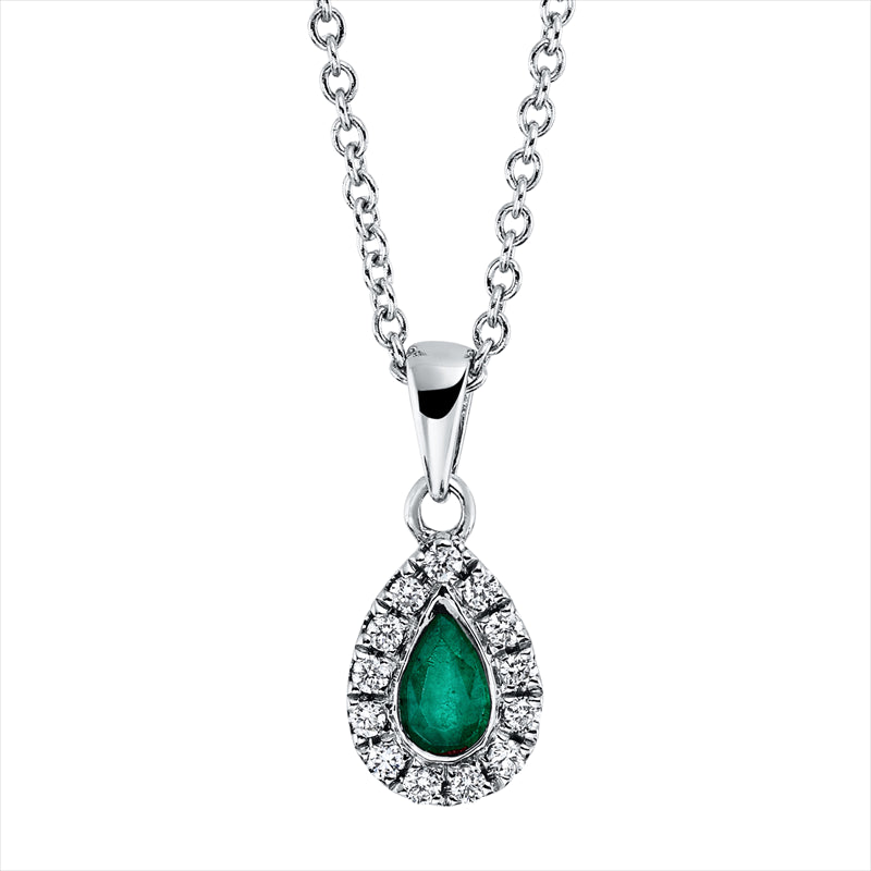 Collier 18 kt WG, mit ZÖ 40 cm + 42.5 cm, 13 Brill. 0,08 ct, TW-si, 1 Smaragd 0,19 ct grün
