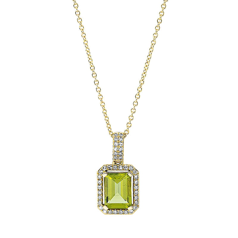 Collier 18 kt GG, mit ZÖ 42 cm, 40 Dia. 0,16 ct, TW-si, 1 Peridot 1,73 ct grün
