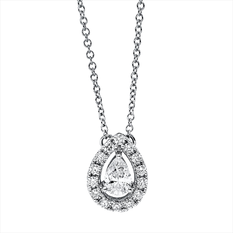 Collier 18 kt WG, mit ZÖ 42 cm, 1 Tropfen 0,21 ct, TW-si, 14 Brill. 0,14 ct, TW-si