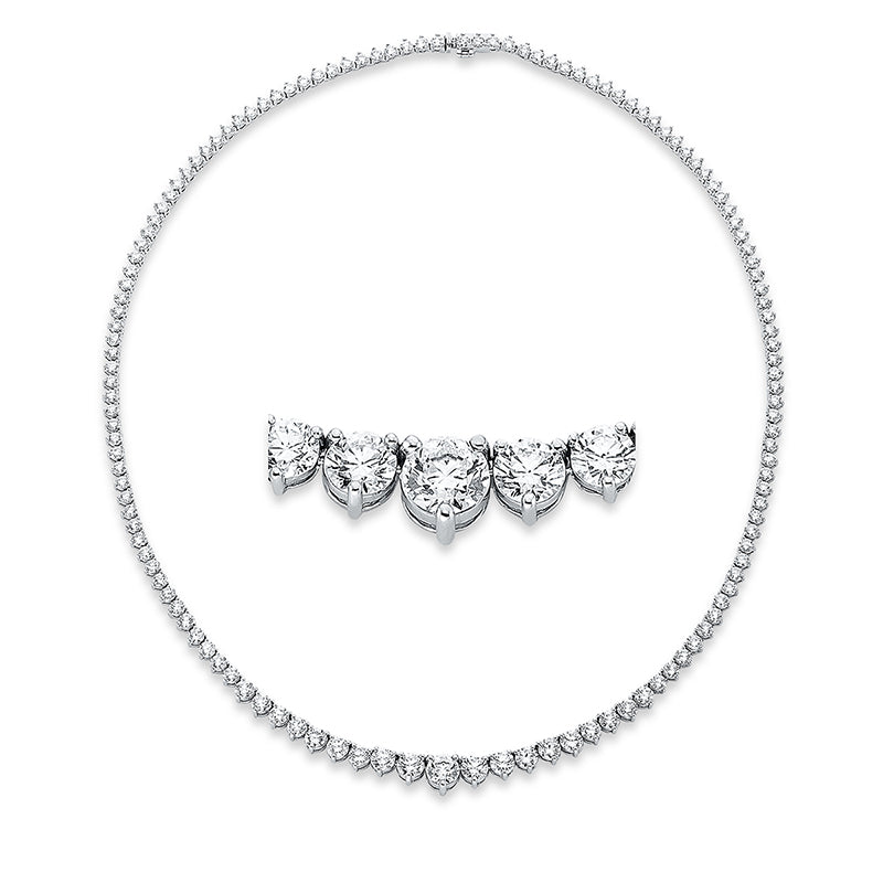 Collier 18 kt WG, 2 Brill. 0,55 ct, TW-si, 2 Brill. 0,70 ct, TW-si, 1 Brill. 0,70 ct, TW-si, 128 Brill. 9,80 ct, TW-si