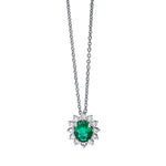 Collier 18 kt WG, mit ZÖ 42 cm, 12 Brill. 0,32 ct, F-vsi/si, 1 Smaragd 0,59 ct grün