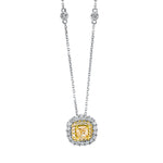 Collier 18 kt WG+GG, 22 Brill. 0,49 ct, TW-si, 1 Cushion 0,64 ct, gelb, 16 Brill. 0,15 ct, gelb