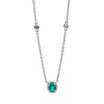 Collier 18 kt WG, 18 Brill. 0,10 ct, TW-si, 1 Smaragd 0,32 ct grün