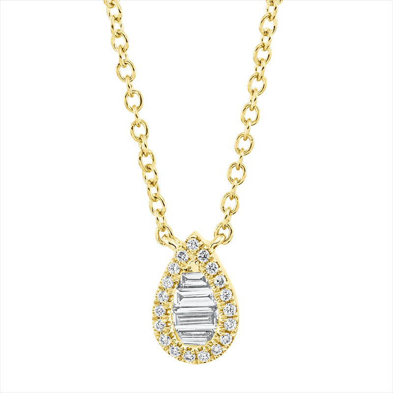 Collier 18 kt GG. mit ZÖ 38cm.40.6cm.43.2cm. 4 Baguette 0.11 ct. TW-si. 19 Brillanten 0.05 ct. TW-si. L:45.7 cm