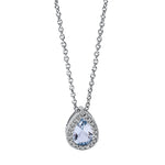 Collier 18 kt WG, mit ZÖ 40 cm, 20 Brill. 0,10 ct, TW-si, 1 Aquamarin 0,57 ct blau