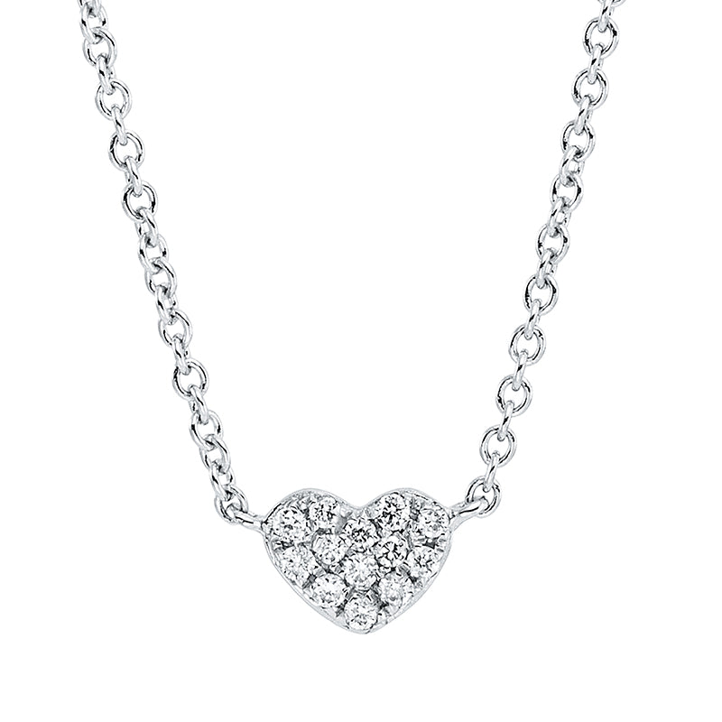 Collier 18 kt WG Herz. mit ZÖ 38 cm. 13 Brillanten 0.04 ct. TW-si. L:42.0 cm
