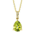 Collier 18 kt GG, mit ZÖ 42 cm, 5 Dia. 0,02 ct, TW-si, 1 Peridot 1,97 ct grün