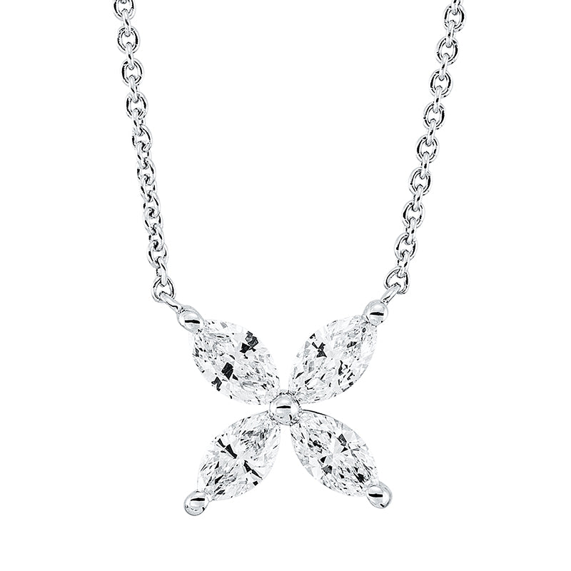 Collier 18 kt WG. mit ZÖ 40 cm + 43 cm. 4 Navette 0.61 ct. TW-si. L:45.0 cm