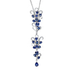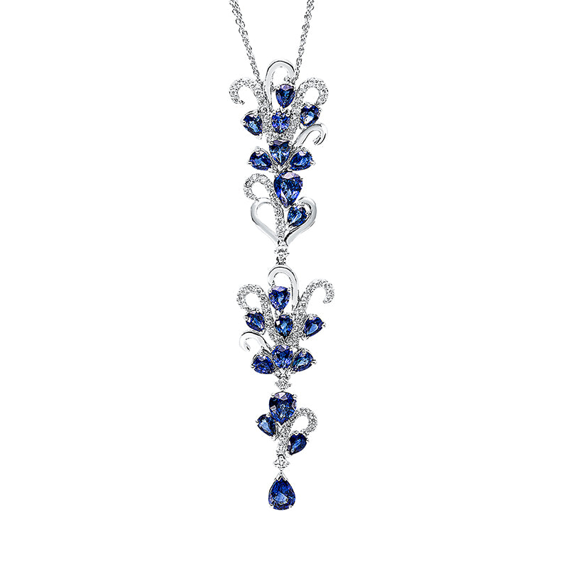 Collier 18 kt WG. 3 Brillanten 0.12 ct. TW-vsi/si. 63 Brillanten 0.71 ct. TW-vsi/si. 20 Saphire 7.21 ct blau. H:82.2 mm. B:18.0 mm. L:41.9 cm. S:5.1 mm