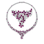 Collier 18 kt WG, 39 Oval 5,84 ct, TW-si, 255 Brill. 9,19 ct, TW-si, 65 Rubine 19,62 ct rot
