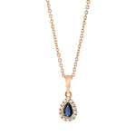 Collier 18 kt RG, mit ZÖ 42 cm, 14 Brill. 0,06 ct, TW-si, 1 Saphir 0,22 ct blau