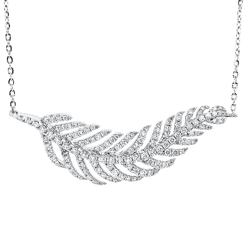Collier 18 kt WG Feder. mit ZÖ 40 cm + 43 cm. 127 Brillanten 0.94 ct. TW-si. L:45.7 cm