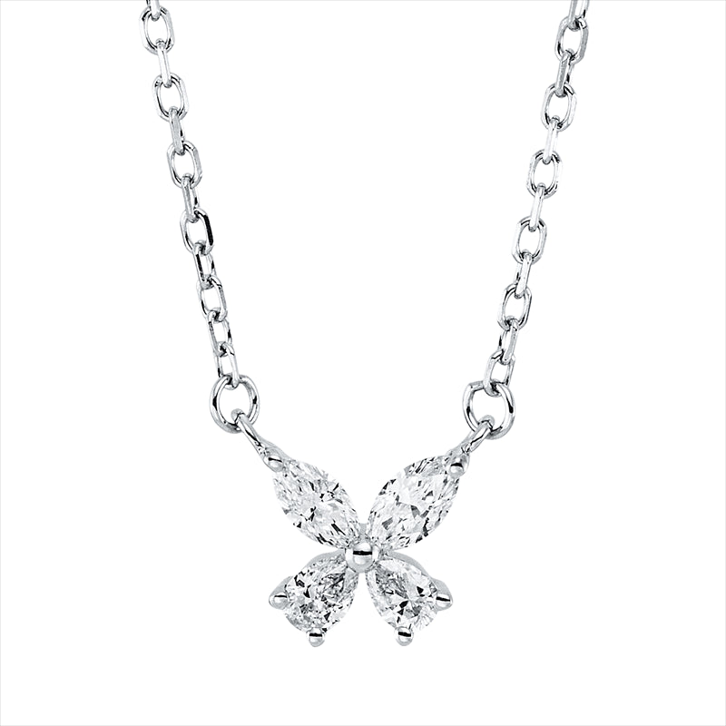 Collier 18 kt WG. mit ZÖ 40 cm. 2 Navette 0.10 ct. TW-vsi. 2 Tropfen 0.06 ct. TW-vsi. L:45.7 cm